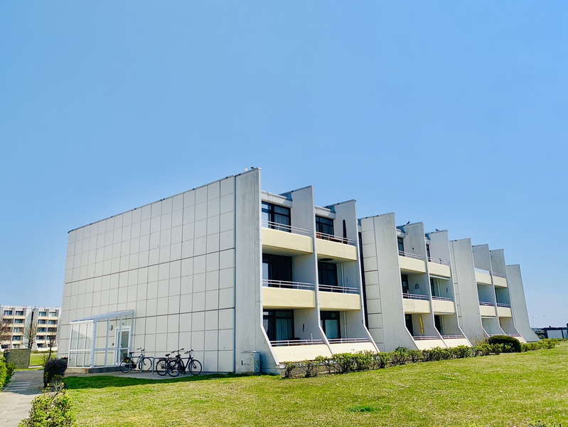 49 Quadratmeter große 2-Raum-Wohnung mit Balkon aus dem Baujahr 1972 im 2. Obergeschoss eines dreistöckigen Flachdach-Gebäudes mit Aufzugsanlage. Seit 2015 steht die gesamte Siedlung unter Denkmalschutz.